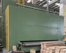 此干燥機融合了國內外先進技術:加大直徑網輥和小節距加密不銹鋼網帶使干燥后的木皮平整且無應力。